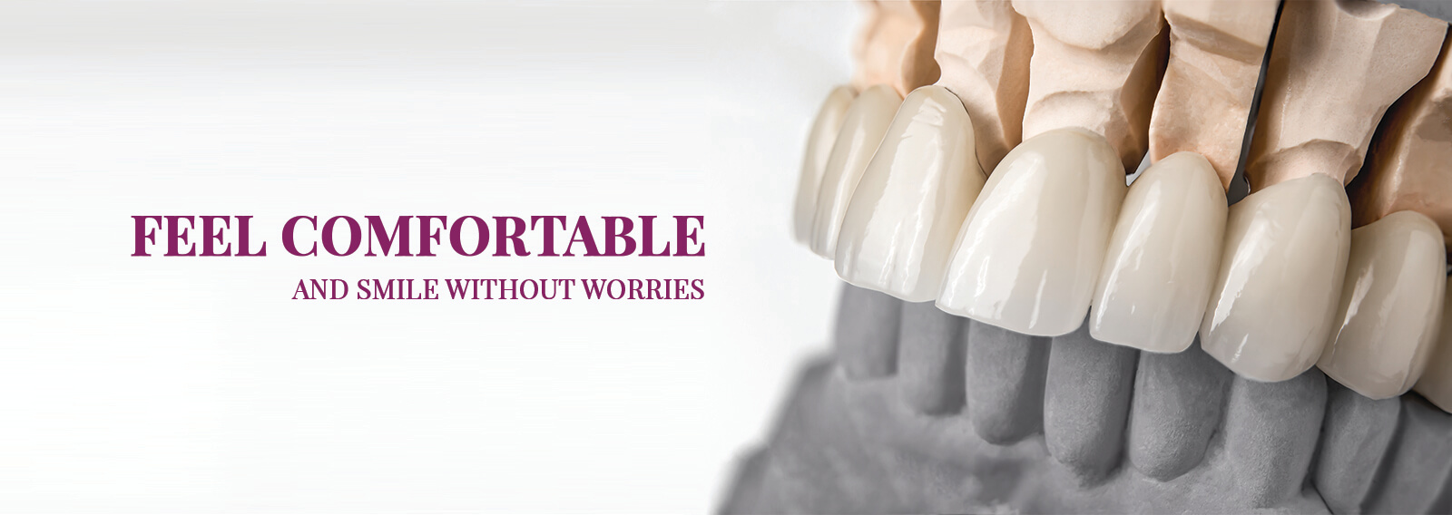 When a tooth is beyond repair or missing, options available are Dental implants or a 3 unit fixed bridge, using natural teeth on either side of bridge. These teeth are crowned & used to support another crown in between. A bridge stabilizes the bite of a patient who is missing one or more teeth. Bridges prevent the surrounding teeth from moving or shifting in the mouth. A missing tooth that is not replaced may cause surrounding teeth to become unstable and require removal, compromising oral health or change the shape of the face and diminish the beauty of a smile. Bridging the space like a bridge spanning a river. Larger bridge can be created to span larger gaps for multiple missing teeth. There are other type of bridges as well. All of them have some advantage & disadvantage which you need to discuss with us.
